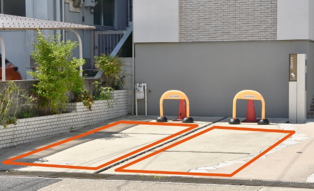 写真のように駐車スペースは2台分確保しておりますが、駐車場が停めにくい場合や運転に自信がない方は、近隣のコインパーキングをご利用ください。